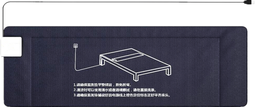 監測墊擺放位置 | 可根據需要將監測墊擺放至普通護理墊上方或下方,監測墊上沿對準枕頭下沿位置,應盡可能位于人體肩部位置垂直下方,需確保監測墊平整擺放 |